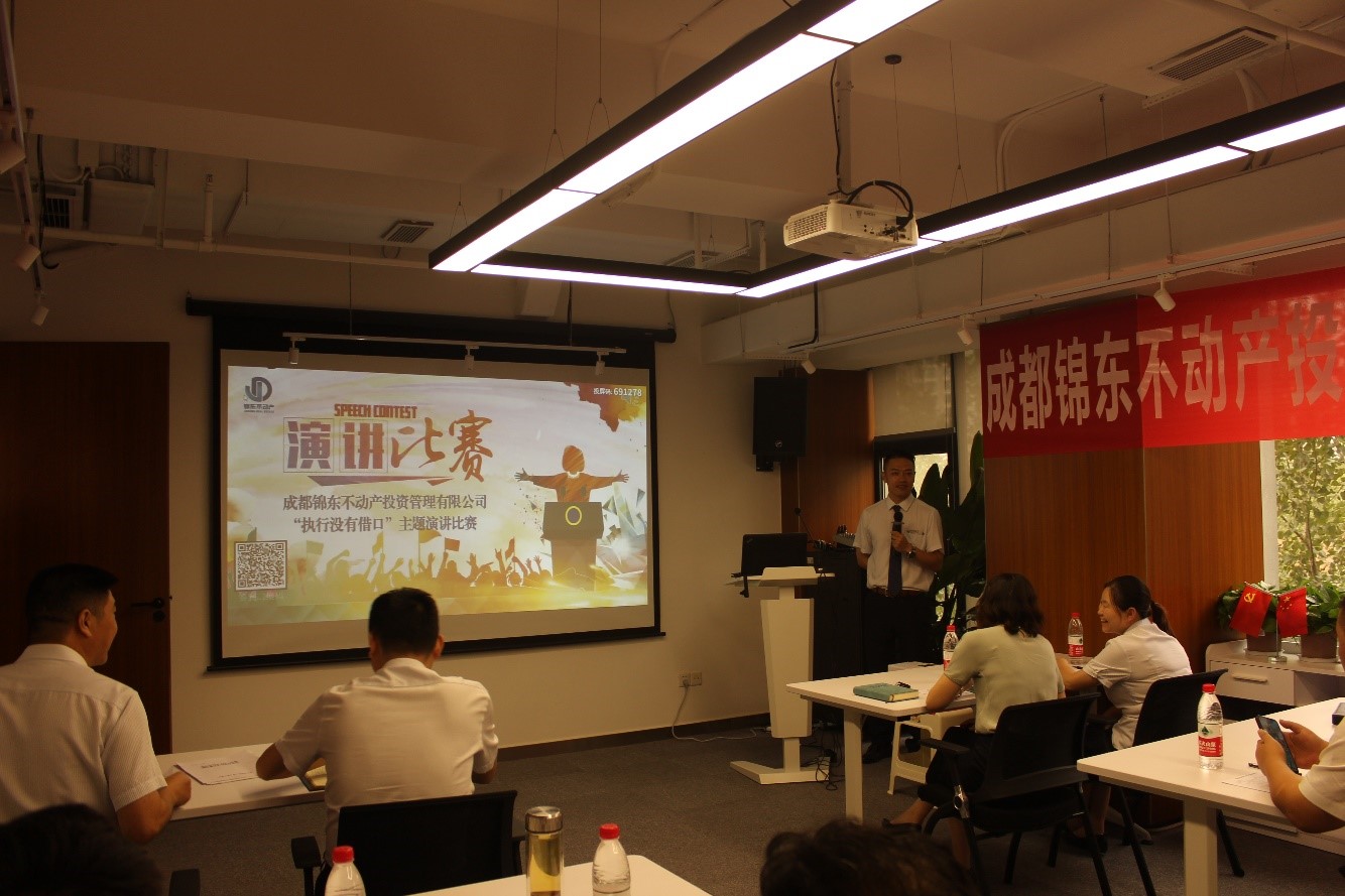 9月3日下午,一場以“執(zhí)行沒有借口”為主題的演講比賽,在錦東公司領(lǐng)導(dǎo)的悉心指導(dǎo)、各項目/部門的密切配合參與下,在“霜晨月”會議室如期舉行。公司領(lǐng)導(dǎo)班子及各項目/部門負(fù)責(zé)人出席活動并擔(dān)任評委,統(tǒng)建公司財務(wù)總監(jiān)肖玲、行政部部長王靜應(yīng)邀出席。